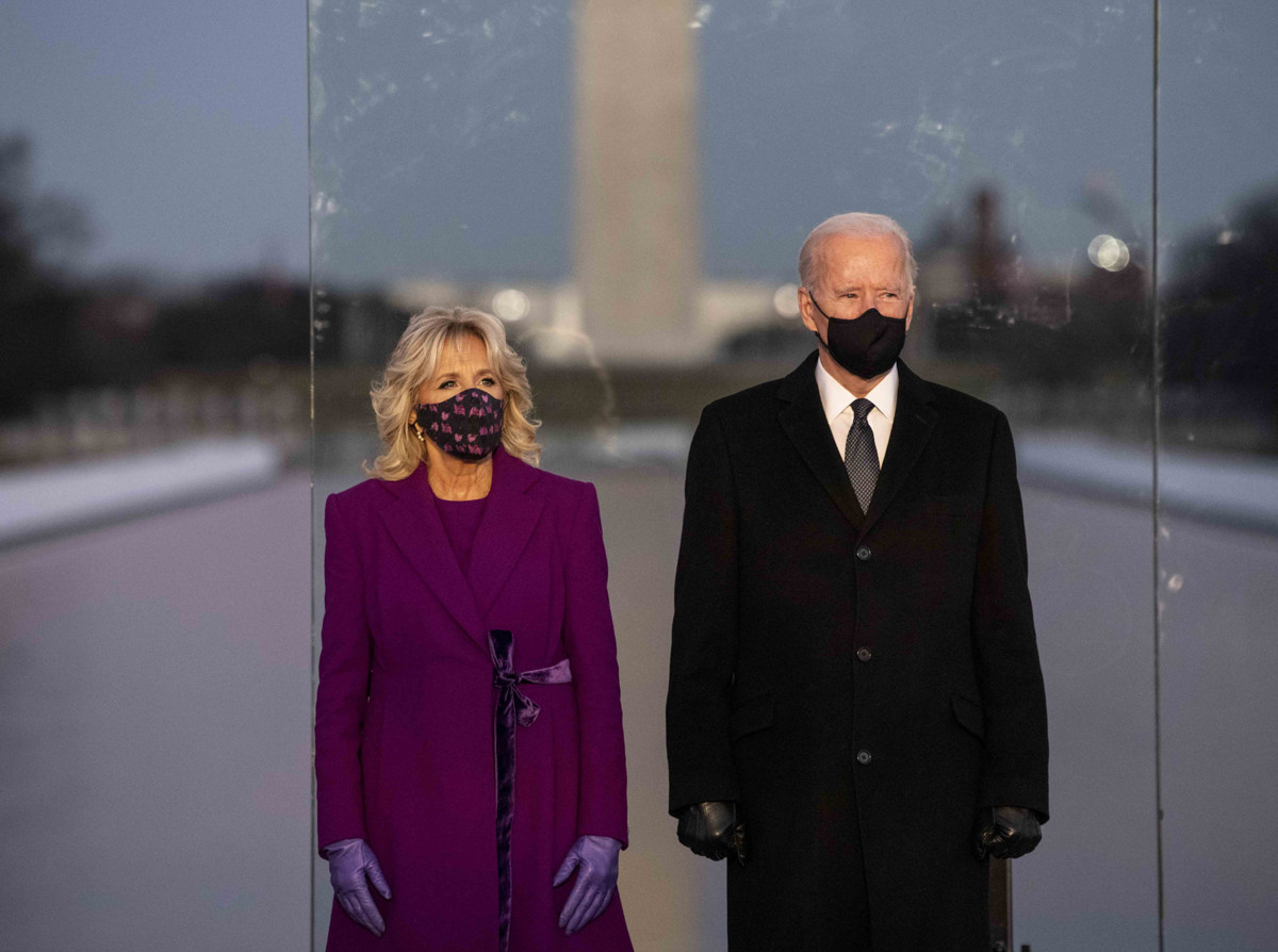 Новый президент США Джо Байден вместе с женой Джилл, а также избранный вице-президент США Камала Харрис и ее муж Дуг Эмхофф посетили перед инаугурацией 19 января мемориальное мероприятие в память о погибших от COVID-19.