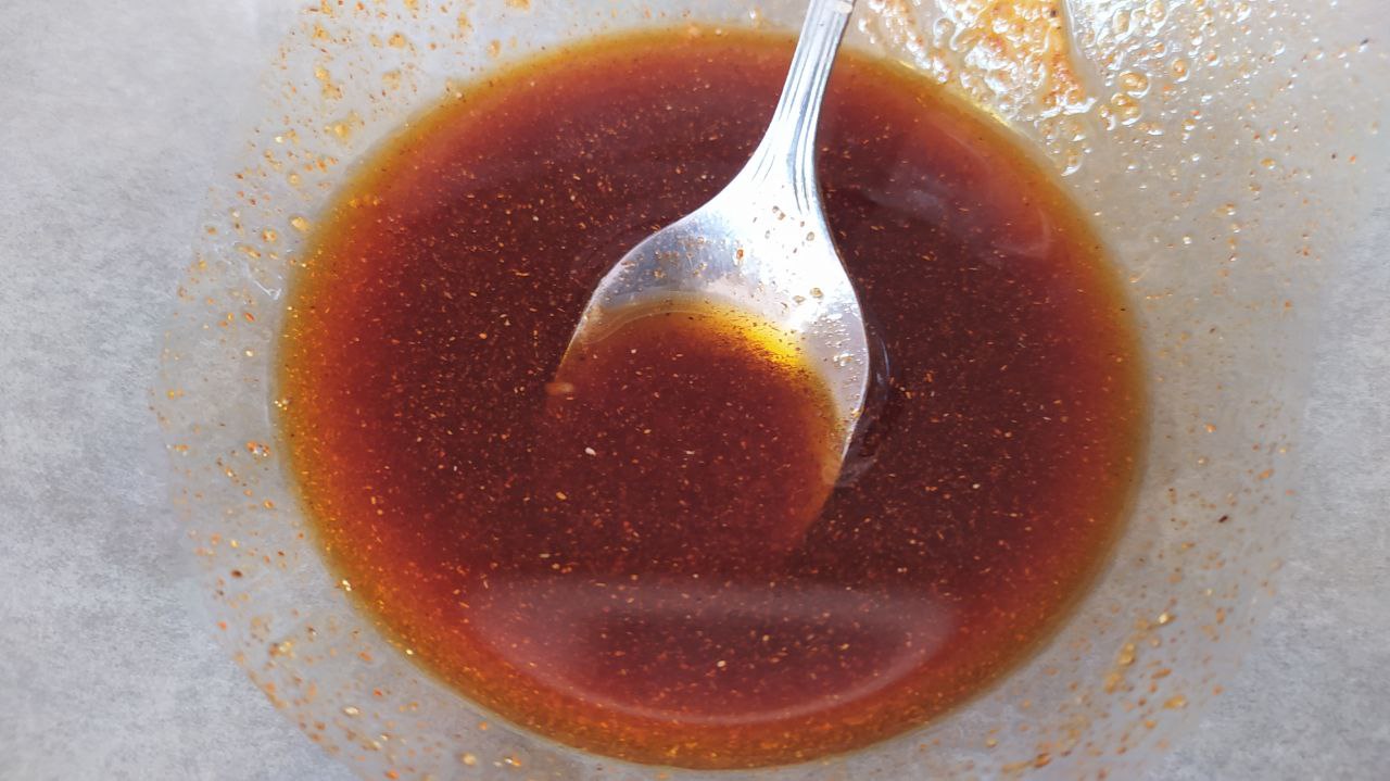 4. В небольшой ёмкости приготовить маринад: смешать растительное масло, паприку, сушёный чеснок, горчицу.