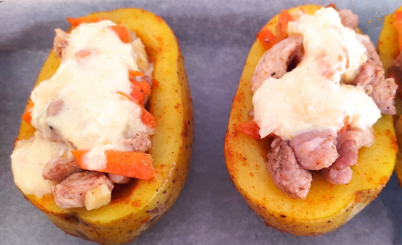 4. Положить фаршированный картофель на противень, застланный пергаментом.