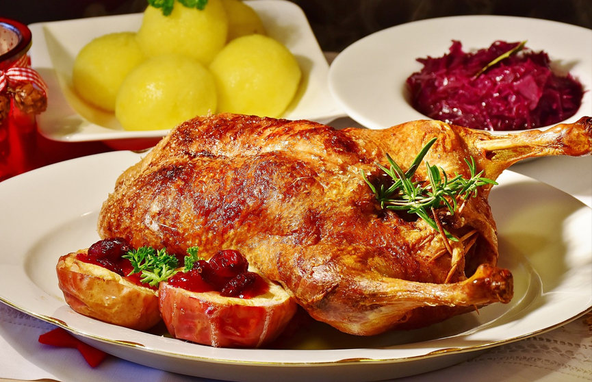 В сам праздник Рождества, 25 декабря, поставить на стол можно мясные блюда – рождественского гуся или запеченную рульку. Отличным дополнением будет винный, брусничный или яблочный соус. В качестве гарнира лучше всего использовать картофельное пюре.