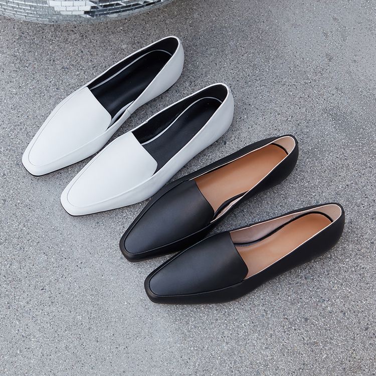 1. Лоферы. Это вид мужской обуви, который уже давно перекочевал в женский гардероб. Комфортные, практичные, идеально сочетаются с любыми брюками. Что касается оттенков, то чаще всего предпочитают базовые цвета, но я бы рекомендовала выбирать все же акцентные – тёплый желтый, бордовый – или светлые тона. С зауженным или квадратным мысом.