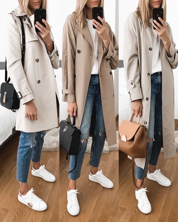 2. Кеды. Классика в женском гардеробе. Идеальный вариант – белые массивные кеды на платформе или на обычной подошве. На осень лучше выбирать бежевые оттенки и чёрные кожаные кеды. По универсальности они не уступают лодочкам.