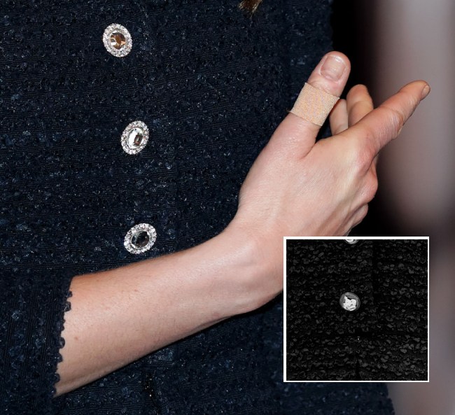 Дело в том, что герцогиню смутили серебристые пуговицы на платье: они были украшены короной. Кейт Миддлтон не могла оставить всё в таком виде, чтобы никто не усмотрел в этом намёка.