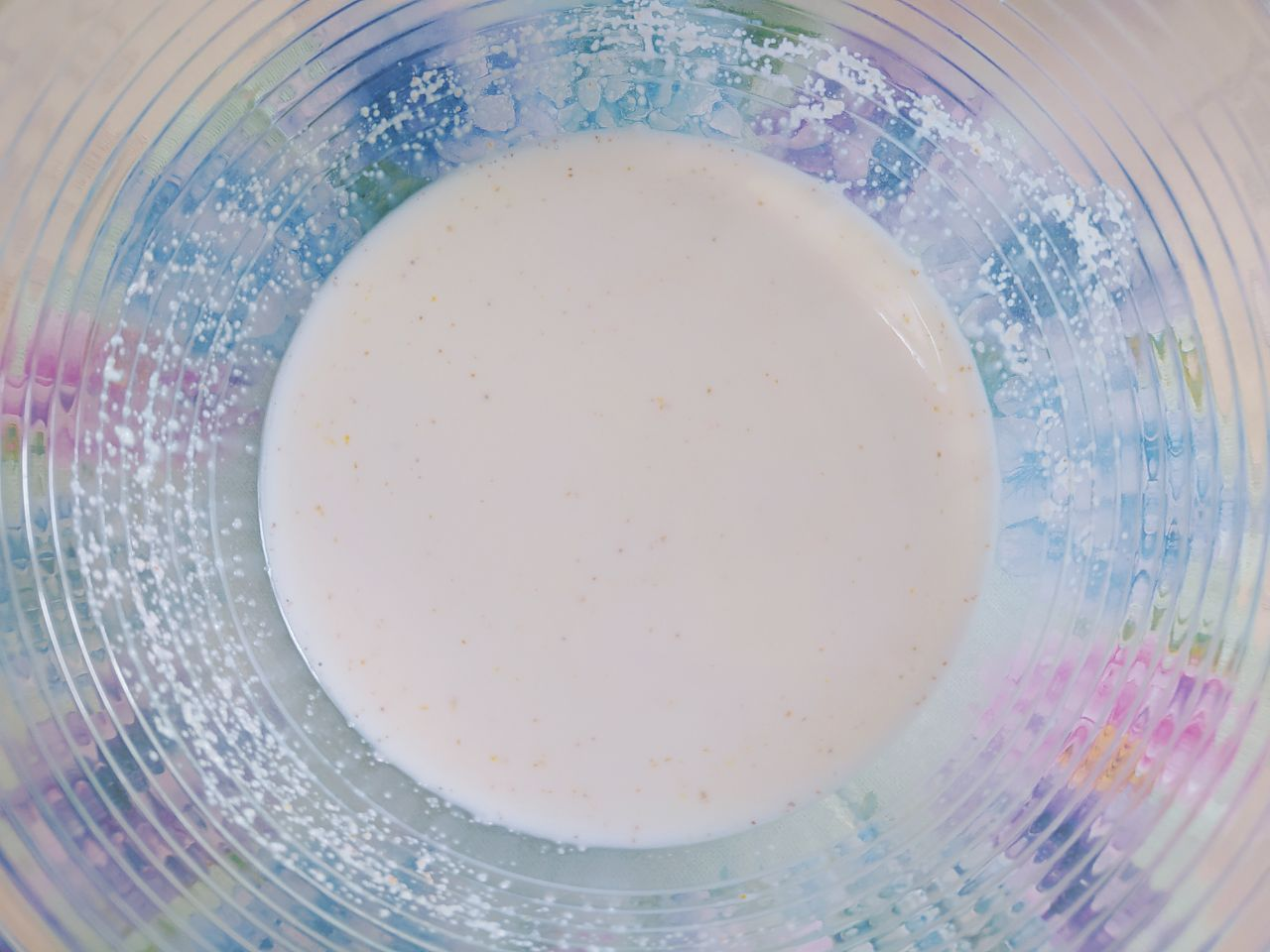 Муку просеять, добавить в нее разрыхлитель. Соединить все ингредиенты, аккуратно перемешать ложкой. Тесто получается жидким, но не стоит из-за этого волноваться.