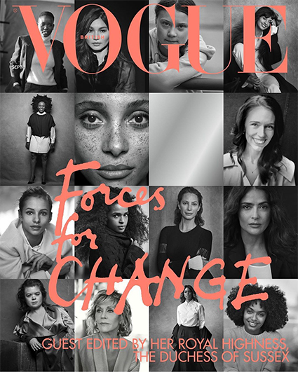 Среди героинь, украсивших обложку – модели Адвоа Абоа, Кристи Тарлингтон, премьер-министр Новой Зеландии Джасинда Ардерн, активистка Грета Тунберг, актрисы Сальма Хайек, Джемма Чан, Джейн Фонда и другие.