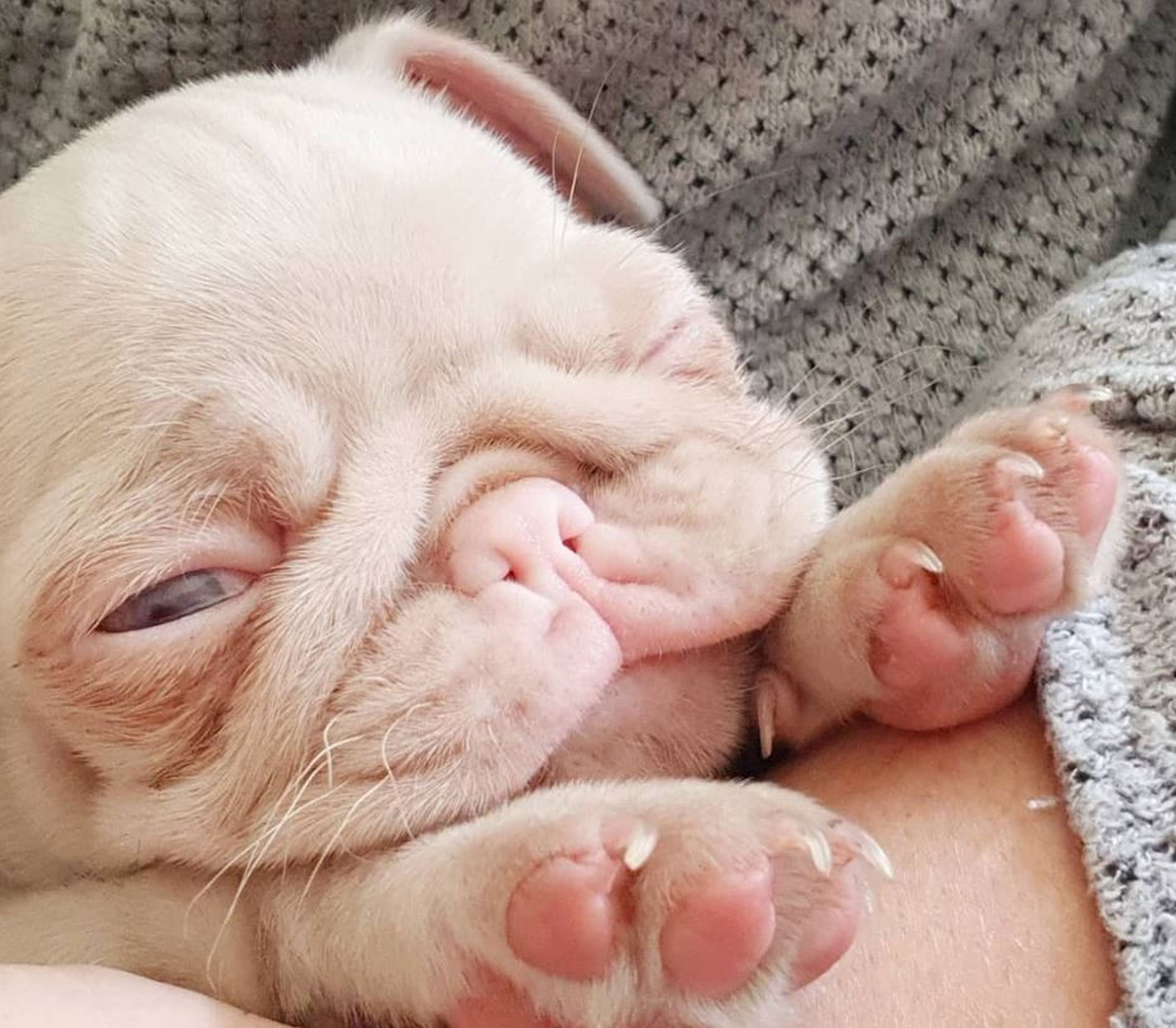 Когда 33-летняя Мария из Лондона пришла к заводчику за песиком, среди всех щенков она заметила розового малыша с голубыми глазами. Женщина выбрала именно его и назвала Молочный Коктейль.