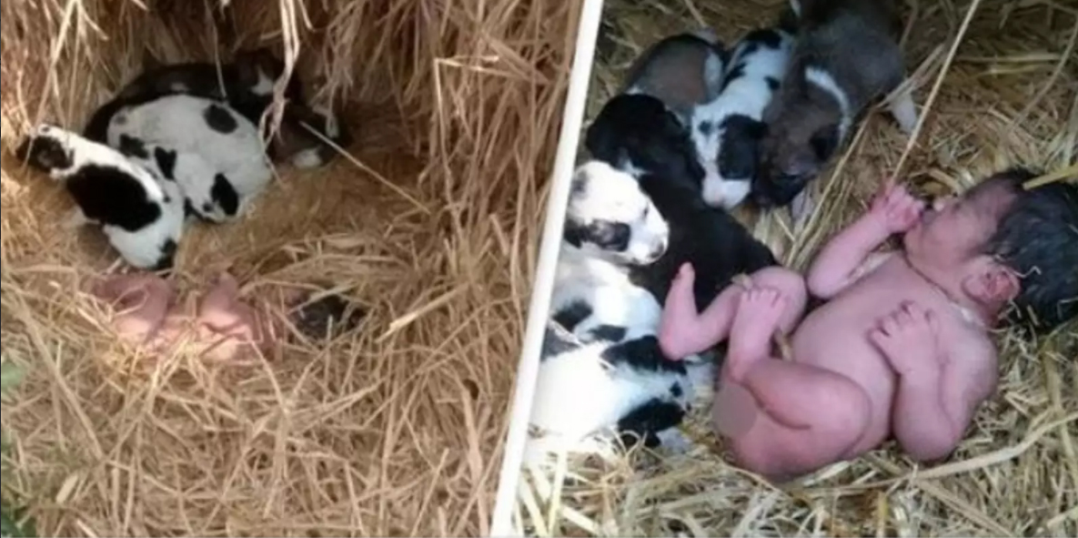 Местные жители считают, что только благодаря тому, что щенки и их мама согрели брошенного ребенка, она выжила.