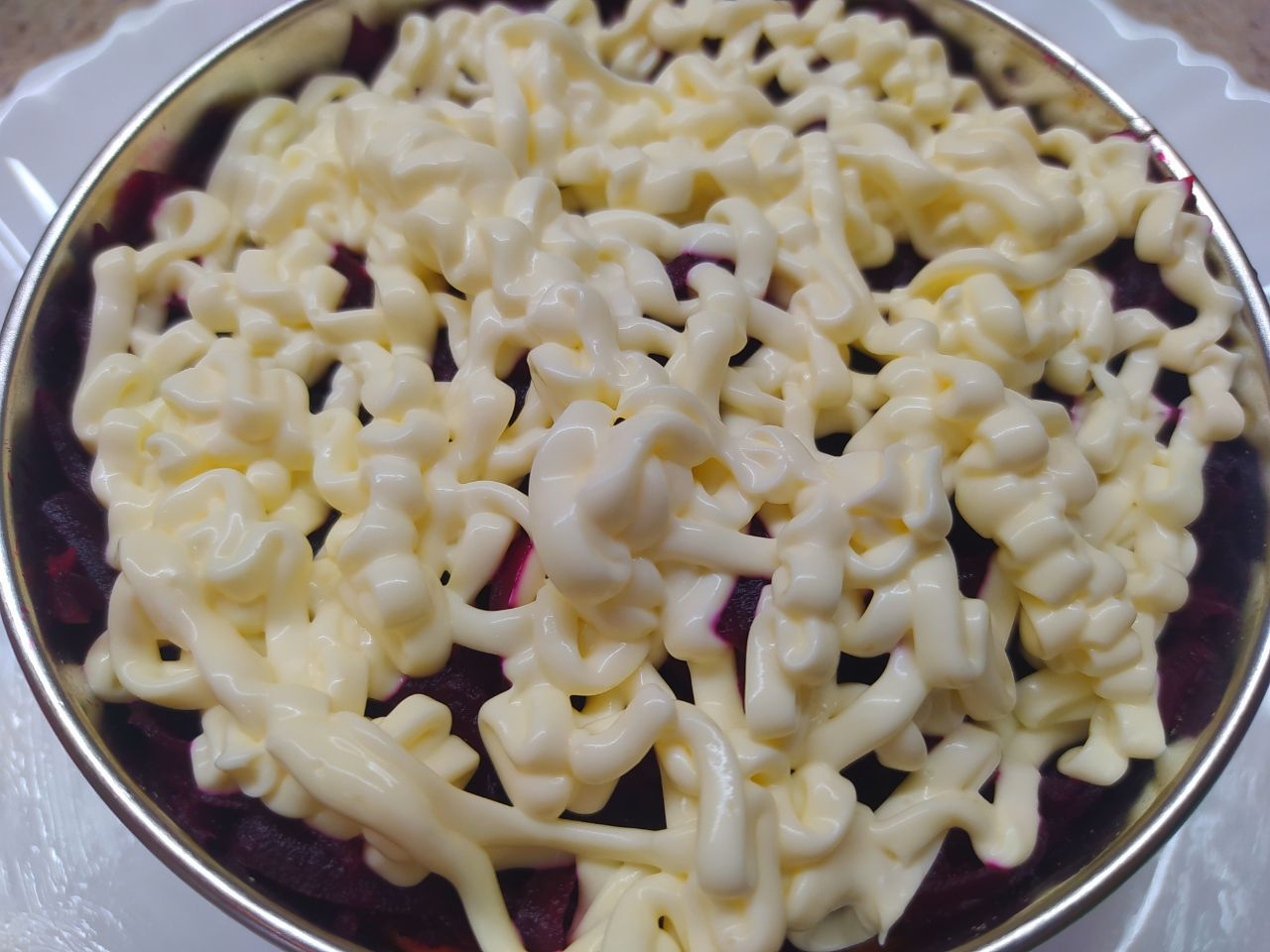 3. В тарелку (селедочницу) слоями выкладываем подготовленные ингредиенты: