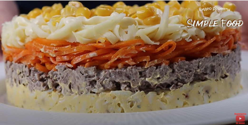 Простой рецепт салата, который подойдет к новогоднему столу, опубликован на YouTube-канале «Рецепты Simple Food с Юлией Шевчук». Блюдо получается аппетитным, нежным и невероятно вкусным.