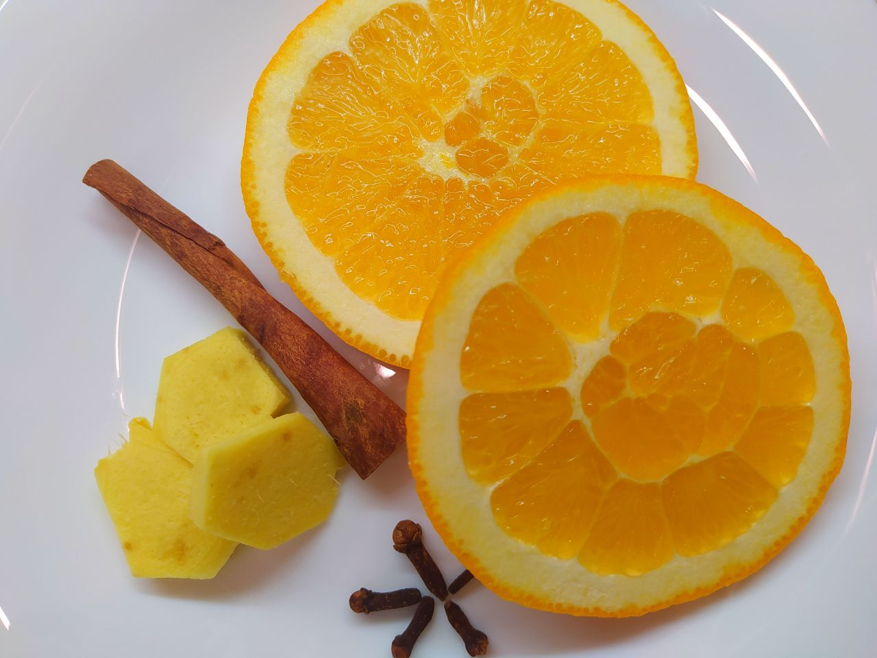 4. В заварник выложить облепиховое пюре, добавить апельсин, гвоздику, имбирь и корицу.