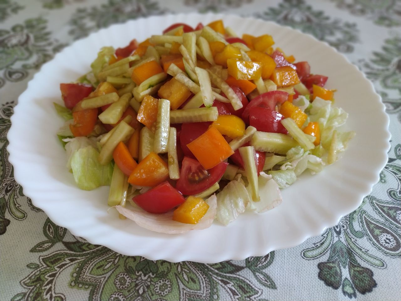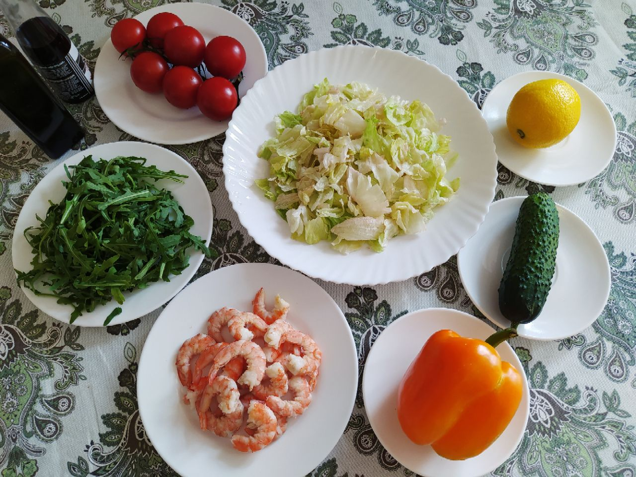 Итак, овощной салат с креветками. Оптимальный баланс клетчатки и белка обеспечит лёгкий, но в то же время сытный приём пищи.