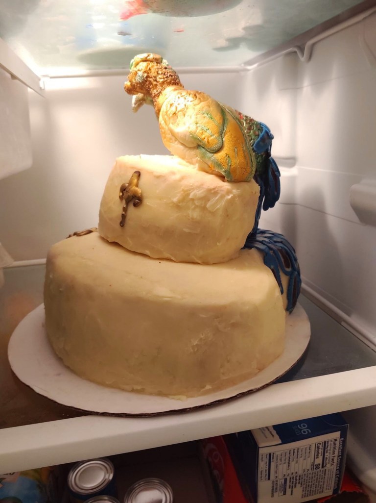 И всё шло по плану, ровно до тех пор, пока невеста не увидела готовый торт. А выглядел он не слишком похоже на оригинал. Девушка смутилась и, решив, что это какая-то шутка, приняла перекошенную конструкцию у кондитера. Однако примерно через 30 минут, после того как кондитер ушла, голова у павлина отвалилась, а терпение девушки лопнуло.