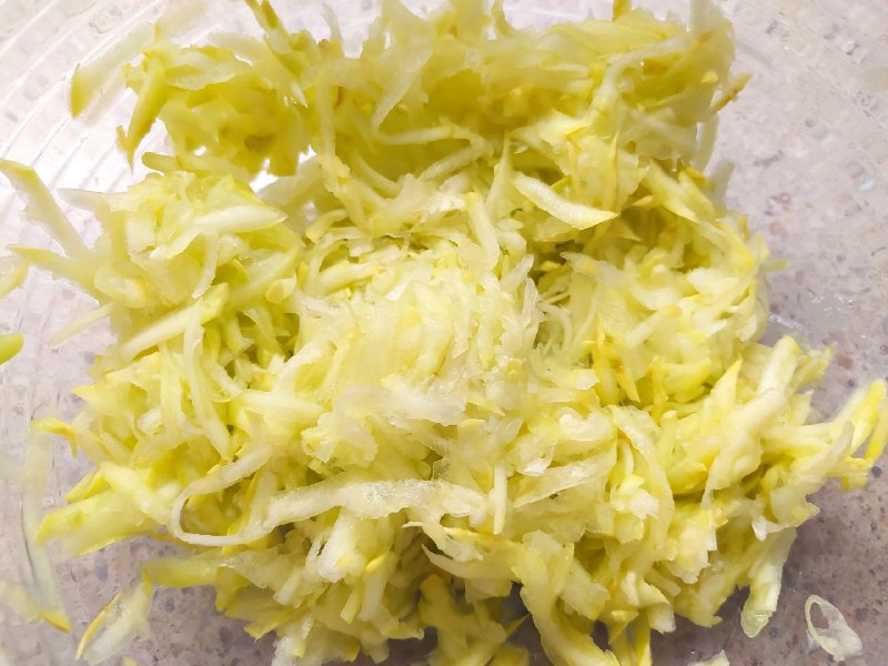 Шаг 1. Кабачок вымыть, просушить и натереть на крупной терке. Сыр натереть на крупной терке.