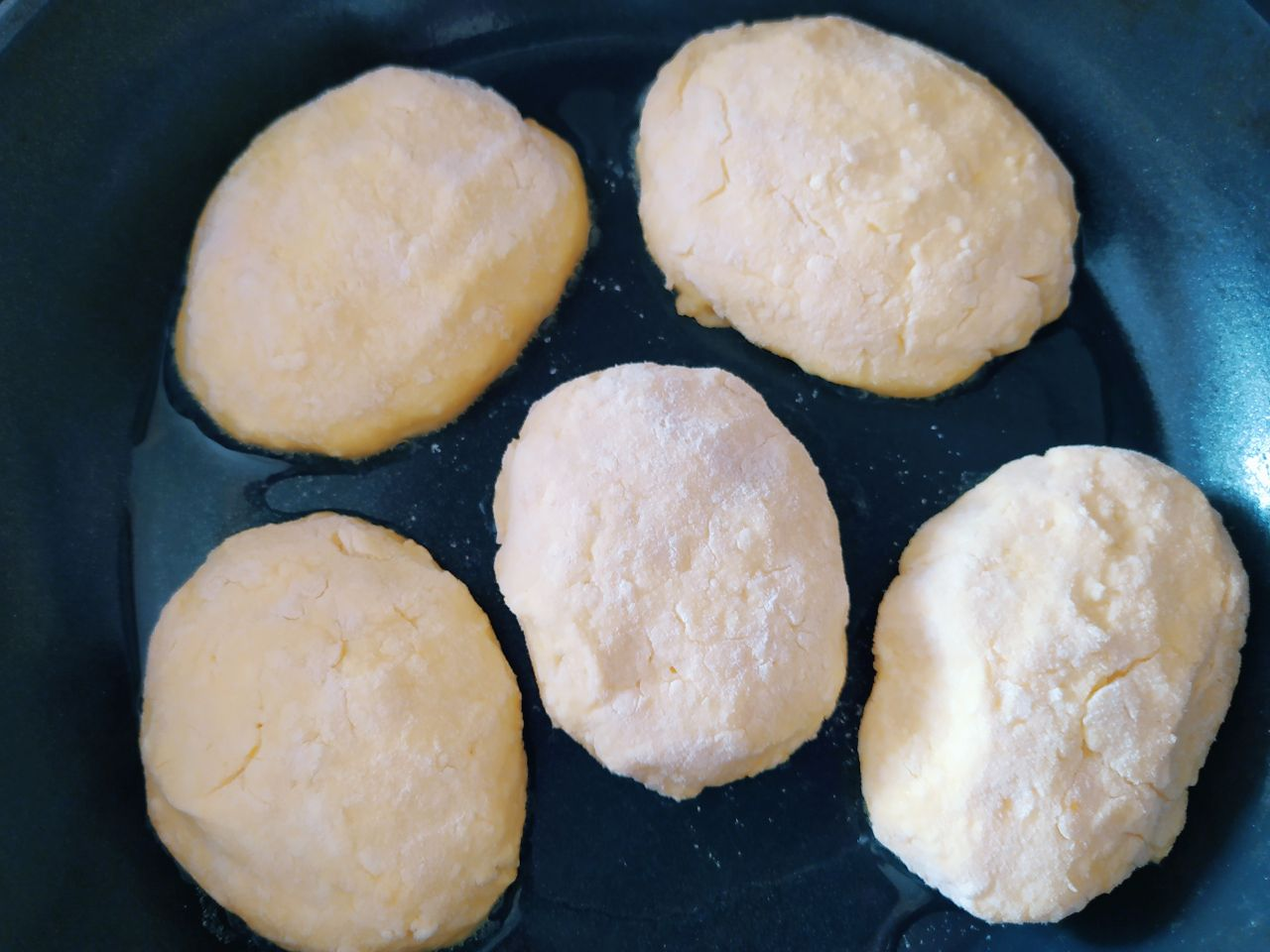 Сформировать пирожки и положить их в разогретую сковороду, смазанную растительным маслом.