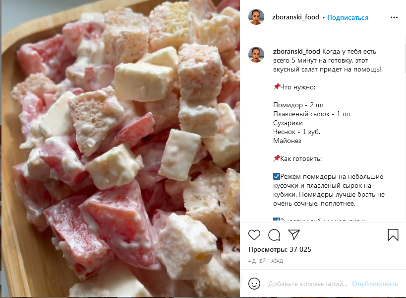 Фото: скриншот из видео Instagram @zboranski_food