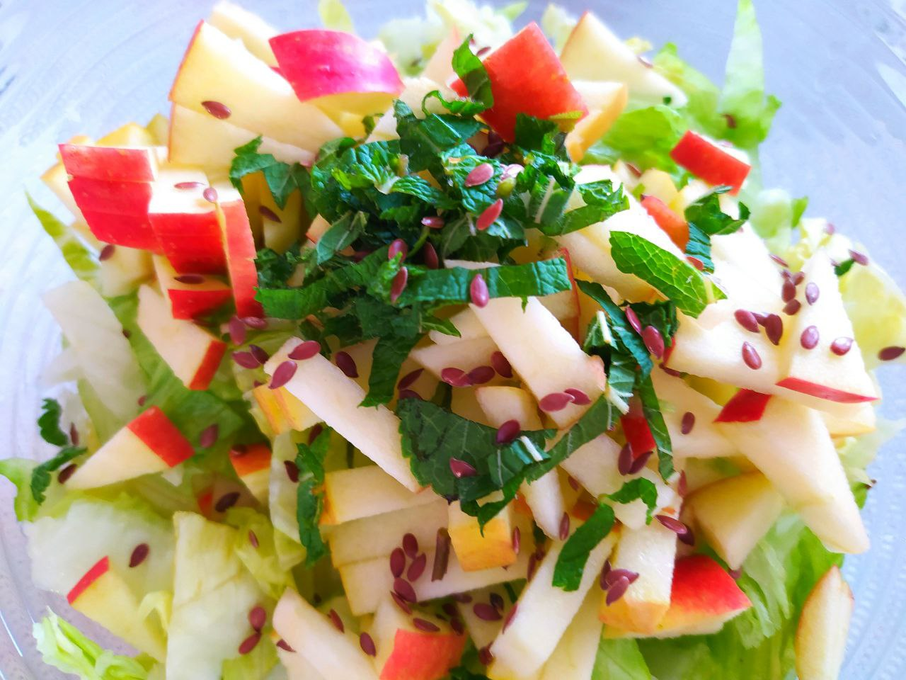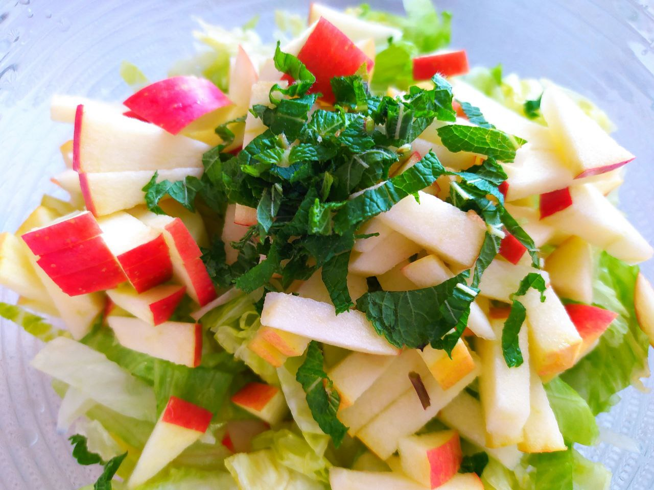 3. Также измельчить сельдерей, салат «Айсберг» и яблоко.
