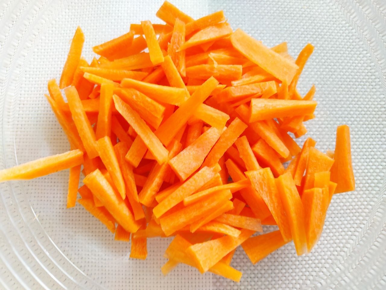 2. Морковь нарезать соломкой. Положить в салатницу.