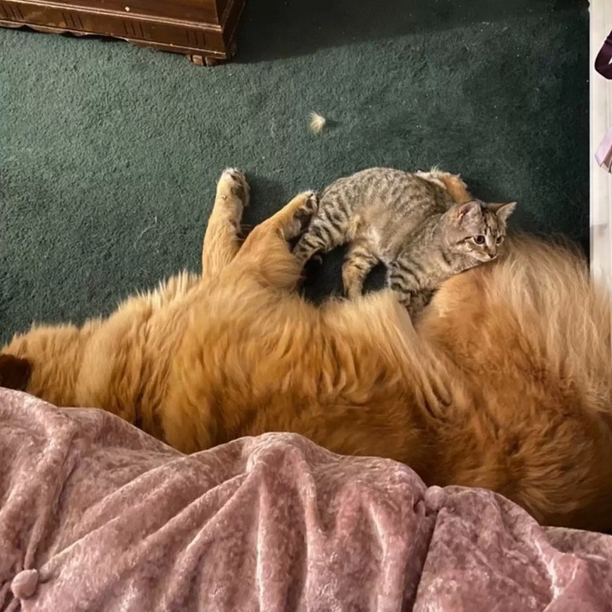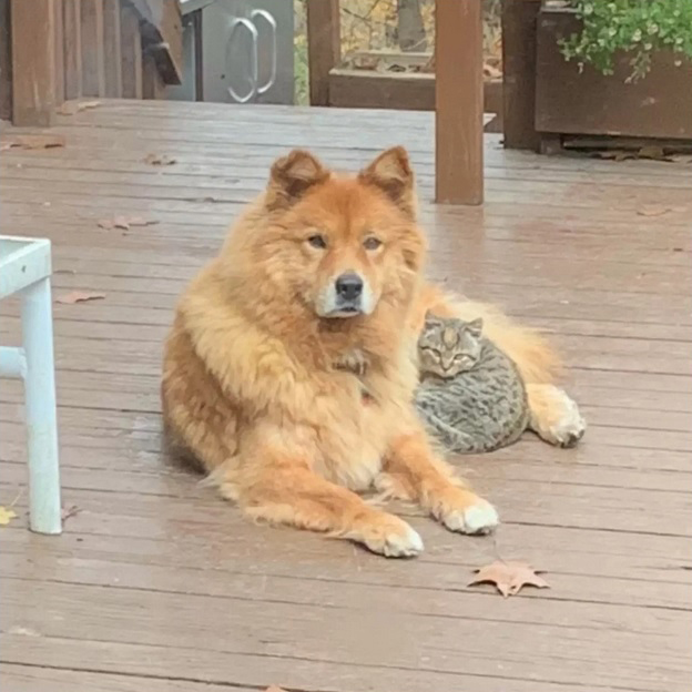 Большая собака «усыновила» дикого котенка и привела его домой. Теперь они все время вместе. Осторожно, слишком милые фото!