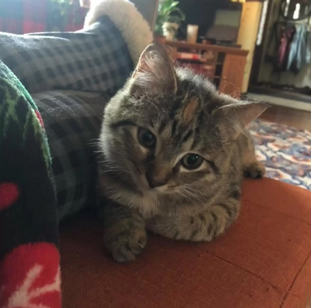 Семья решила приютить пугливого котенка. Его назвали Киттен-Киттен. Теперь новый питомец везде ходит за приемной «мамой», будто он ее ребенок, рассказали хозяева 17-летней Бейли.