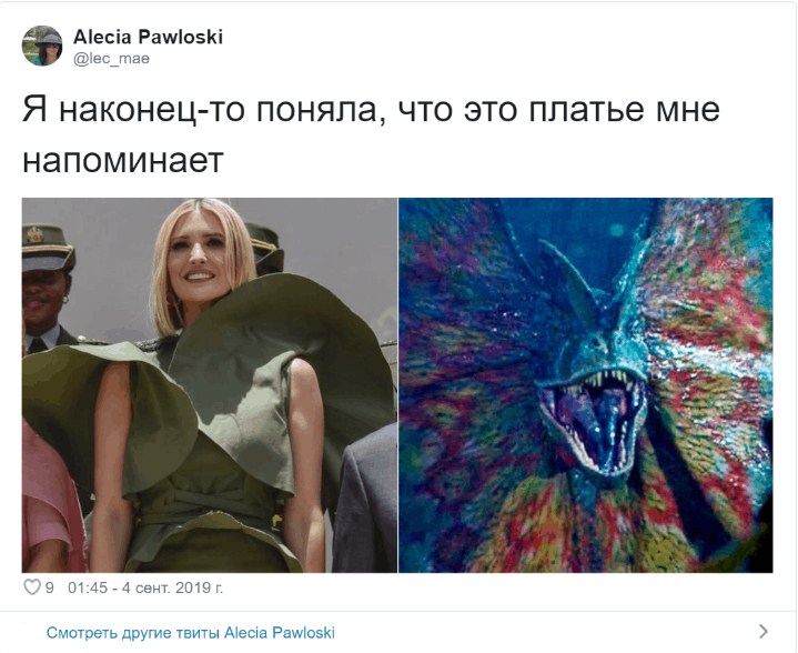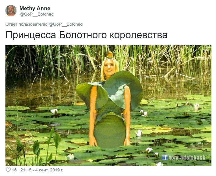 Иванку сравнивали с ящерицей, деревом и прозвали принцессой болотного королевства. А некоторые пользователи даже воспользовались фотошопом. Вот примеры мемов, гуляющих в соцсети: