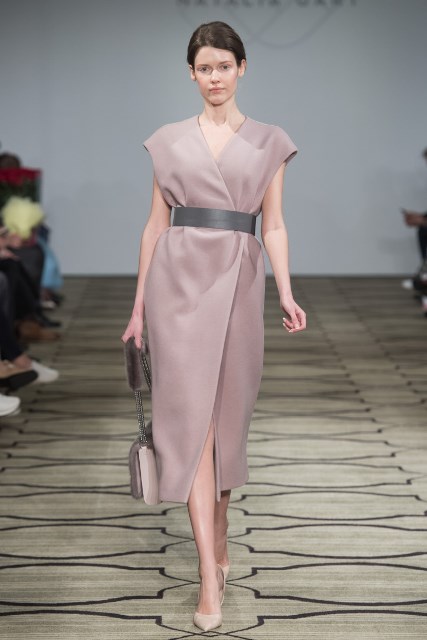 Монохромный образ. Наряд в одной цветовой гамме визуально стройнит фигуру. Вертикальная полоса цвета вытягивает и сужает силуэт. Главное, эту полосу не разбивать. В данном случае лучше отказаться от поясных сумок и акцентных ремней.