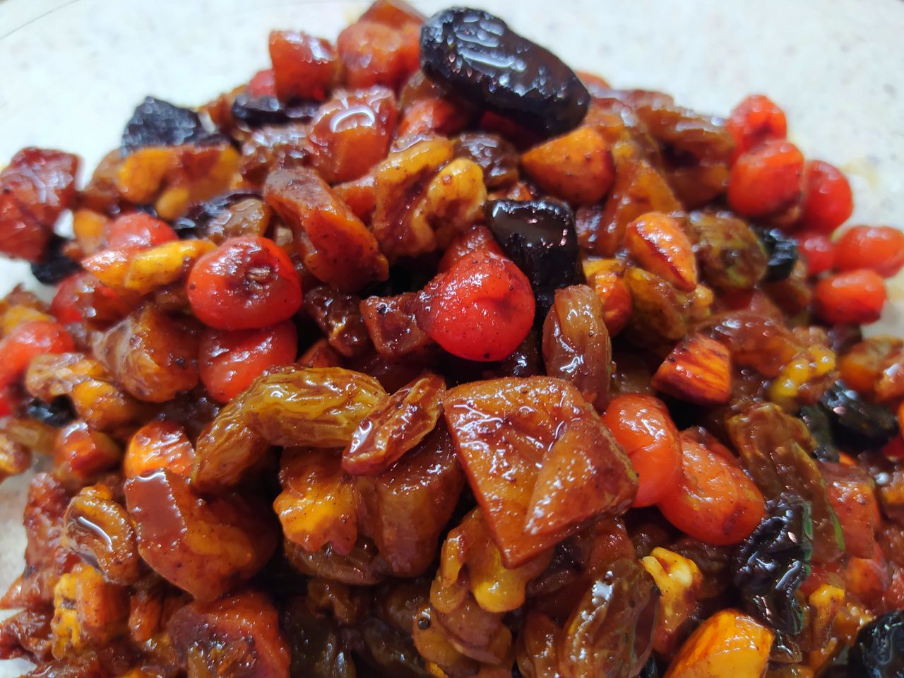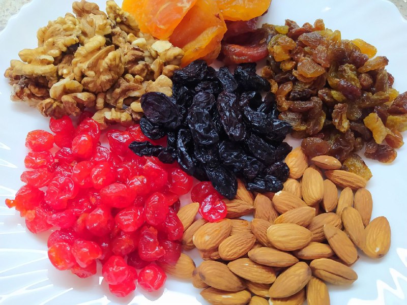 1. Орехи крупно порубить. Изюм, вишню, курагу вымыть и просушить.