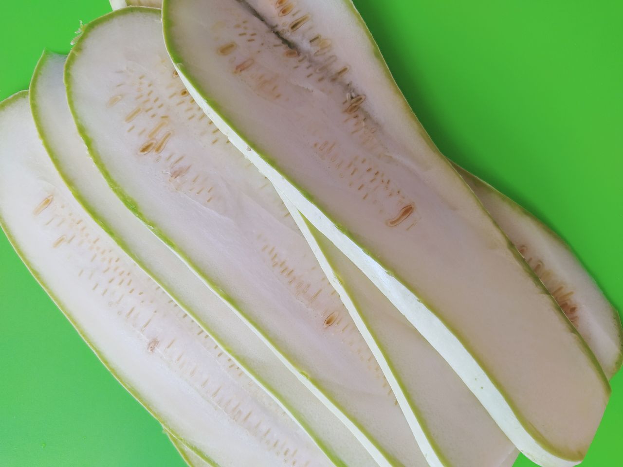 Кабачок нарезать вдоль на ломтики толщиной 3-4 мм. Сложить в тарелку, сбрызнуть растительным маслом и дать постоять 10-15 минут.