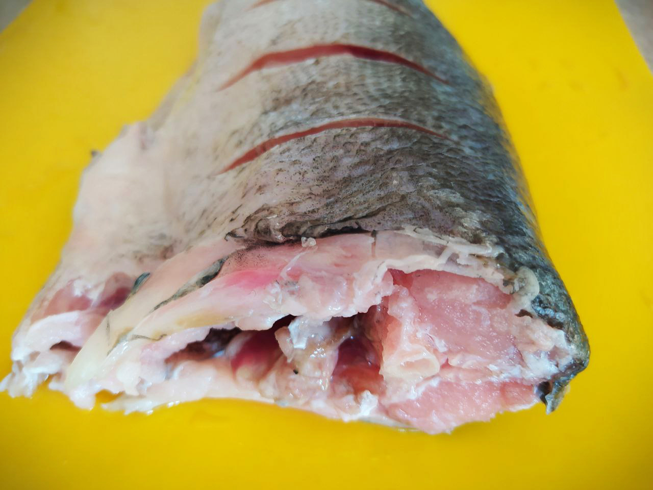 2. Рыбу почистить, вымыть и просушить. Сделать с одной стороны тушки диагональные неглубокие надрезы.