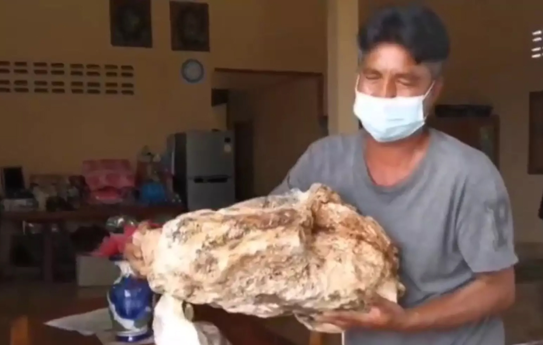 Рыбак из Таиланда Наронг Пхетчарадж возвращался после тяжелого трудового дня в море, когда вдруг заметил на берегу огромный серо-розовый булыжник. Мужчина подумал, что камень может быть ценным, и оказался прав.