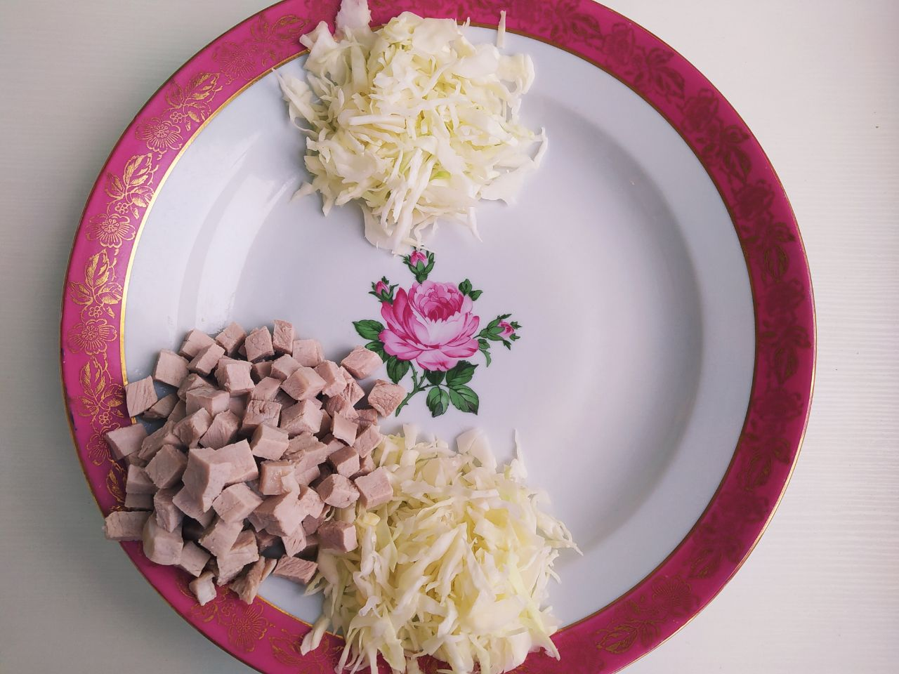 2. Свинину сварить в подсоленной воде, остудить и нарезать кубиками.