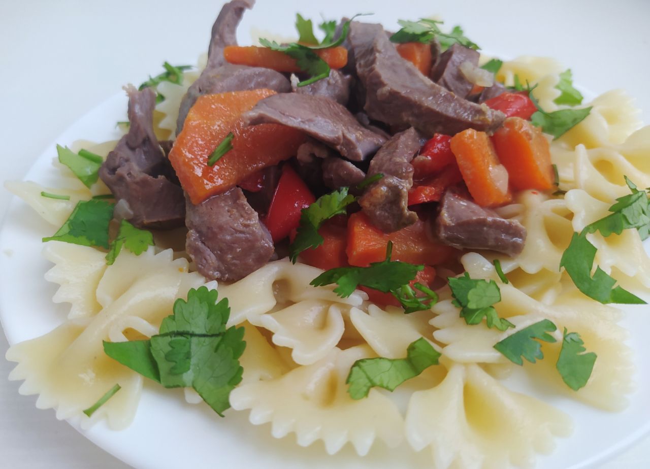 Сердце с овощами можно подавать с любой пастой и зеленью на ваш вкус. Приятного аппетита!