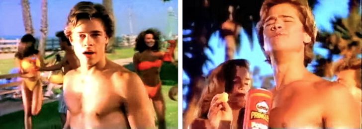Судя по снимку Брэд Питт когда-то обожал чипсы, ну или был готов изобразить любовь к чему угодно за соответствующий гонорар.