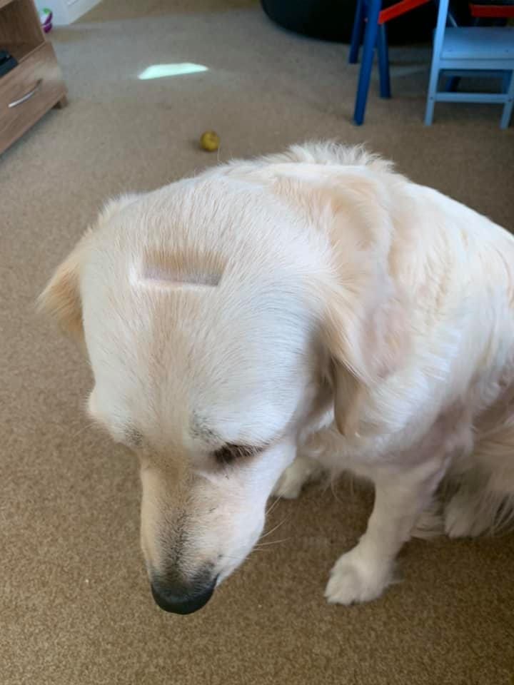 Женщина стригла бороду своему мужу при помощи машинки, когда Эви подошла к ней. Рэйчел в шутку поднесла машинку к голове собаки. В этот момент собака неожиданно дёрнула головой и тут же лишилась прямоугольного кусочка шерсти на макушке.