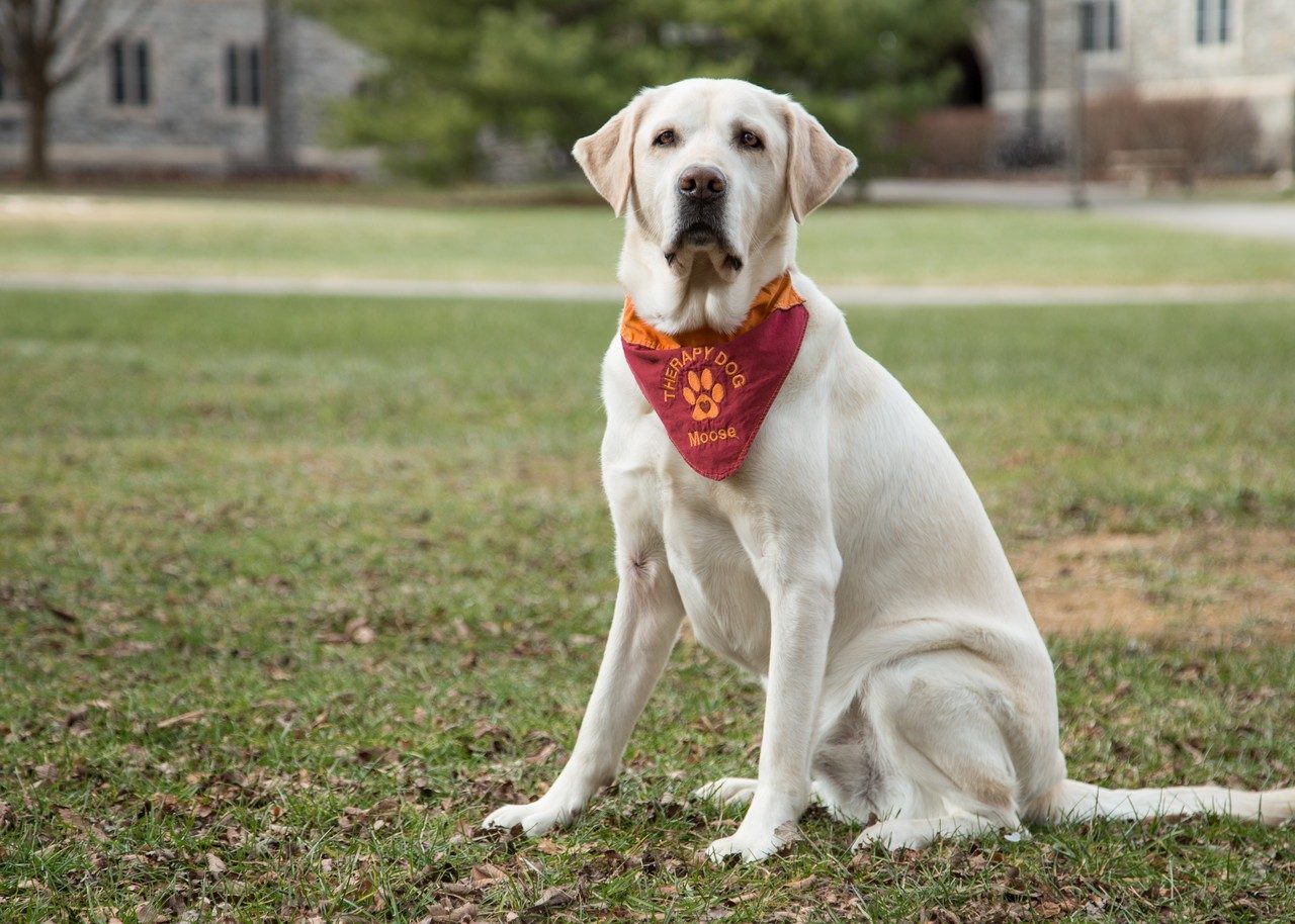 Терапевтический пес по кличке Лось (Moose) работает в Центре психологической поддержки с 2014 года. Он провел более 7500 психологических консультаций и участвовал в более чем 500 информационных мероприятиях.