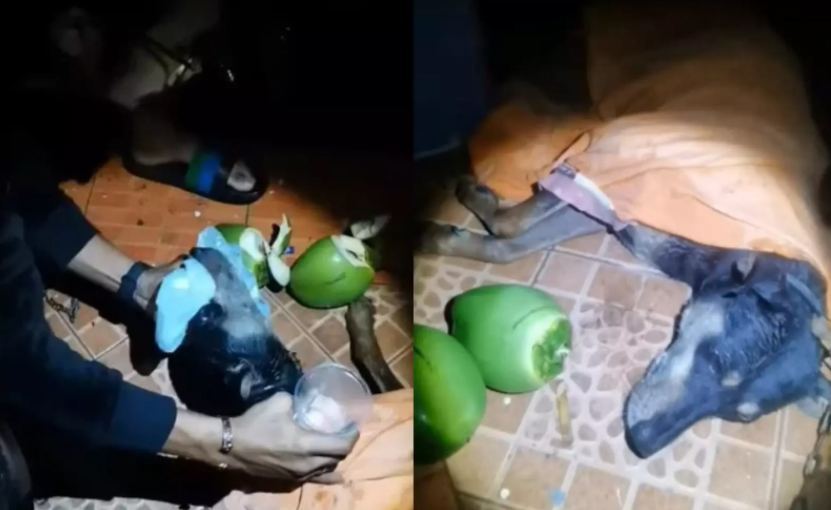 Малазиец накрыл собаку одеялом и попытался согреть ее. Затем напоил чистой водой и лег рядом, чтобы наблюдать за состоянием пса.