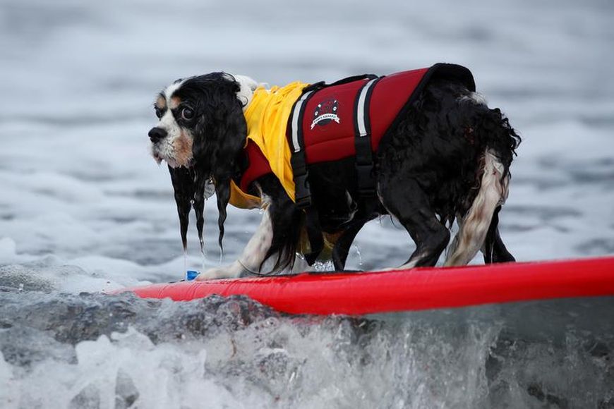 В ежегодных соревнованиях по сёрфингу Surf Dog Surf-A-Thon в Калифорнии приняли участие более 80 собак. Об этом сообщает британская газета Evening Standard.