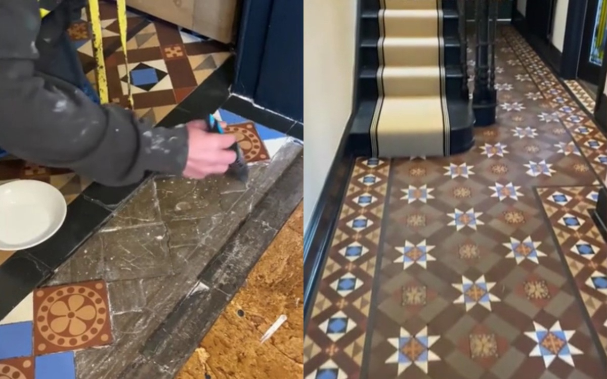 В первую очередь муж с женой избавились от ненужных вещей, которых в доме немало накопилось. Супруги начали убирать ковер, под которым обнаружили что-то невероятное – старинную плитку фабрики Минтона 1875 года выпуска. Такими керамическими декоративными элементами украшены многие английские церкви и Георгиевский зал в Ливерпуле.