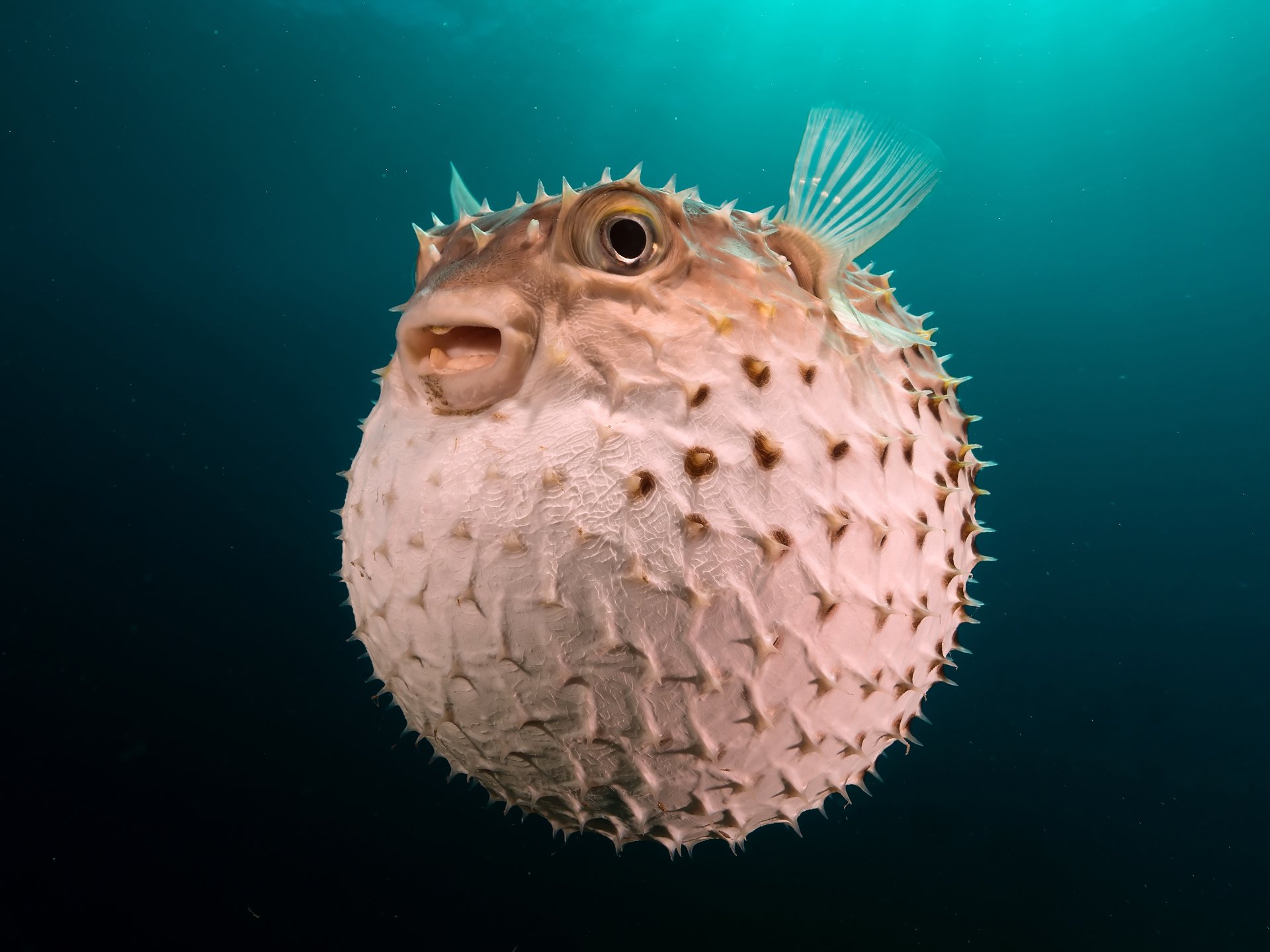 Рыба-дикобраз может удивить вас своей способностью за короткий срок увеличиться в 2 раза. Ее размер может достигать баскетбольного мяча. Такая добыча доступна только хищникам с очень большой пастью.