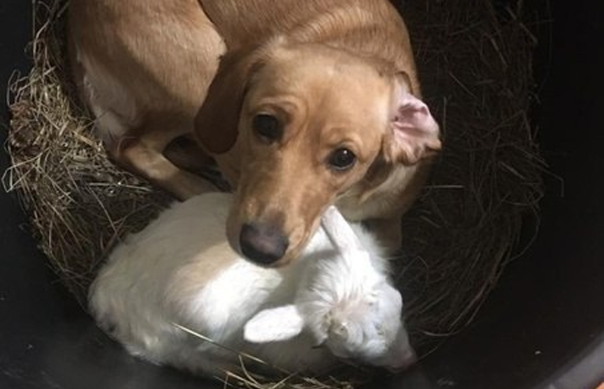 Такса по кличке Шлепа выходила маленького козленка (ВИДЕО)