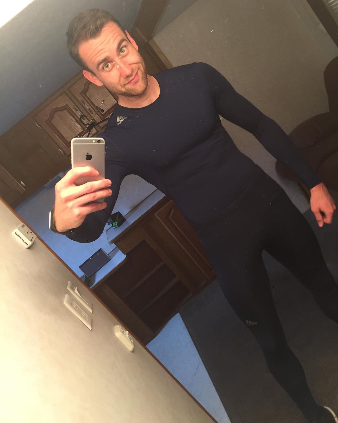 Там на нем надет обтягивающий спортивный костюм, который удачно подчеркивает его подтянутое телосложение. Напомним, в мелодраме с Эмилией Кларк Мэттью сыграл бойфренда главной героини, помешанного на спорте.