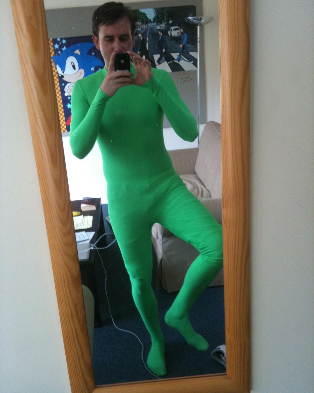 Это фото он сравнил со снимком 11-летней давности, опубликованным накануне, где он также одет в обтягивающий зеленый костюм в честь Дня святого Патрика. Заметно, что форма актера преобразилась.