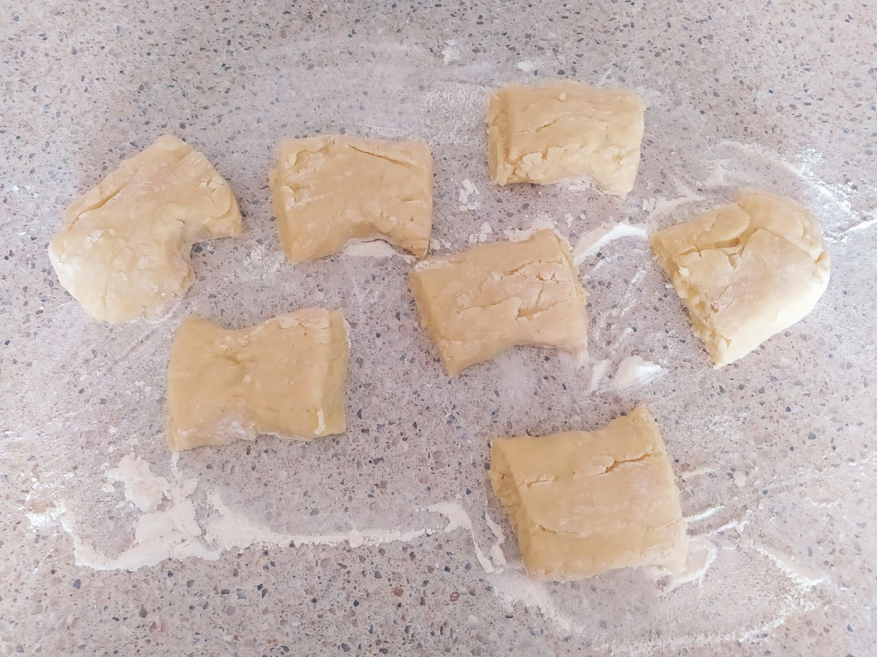 5. Сформировать из теста жгут, разделить на 7 частей.