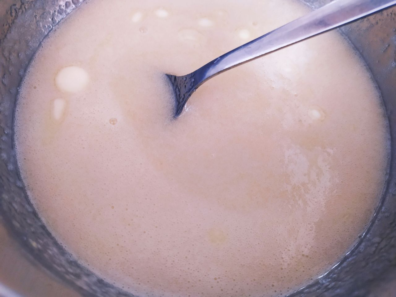 Хорошенько перемешать. Добавить мёд и поставить на маленький огонь. Постоянно помешивая, необходимо растопить ингредиенты. Положить в сотейник соду (не гасить). Продолжать помешивать.