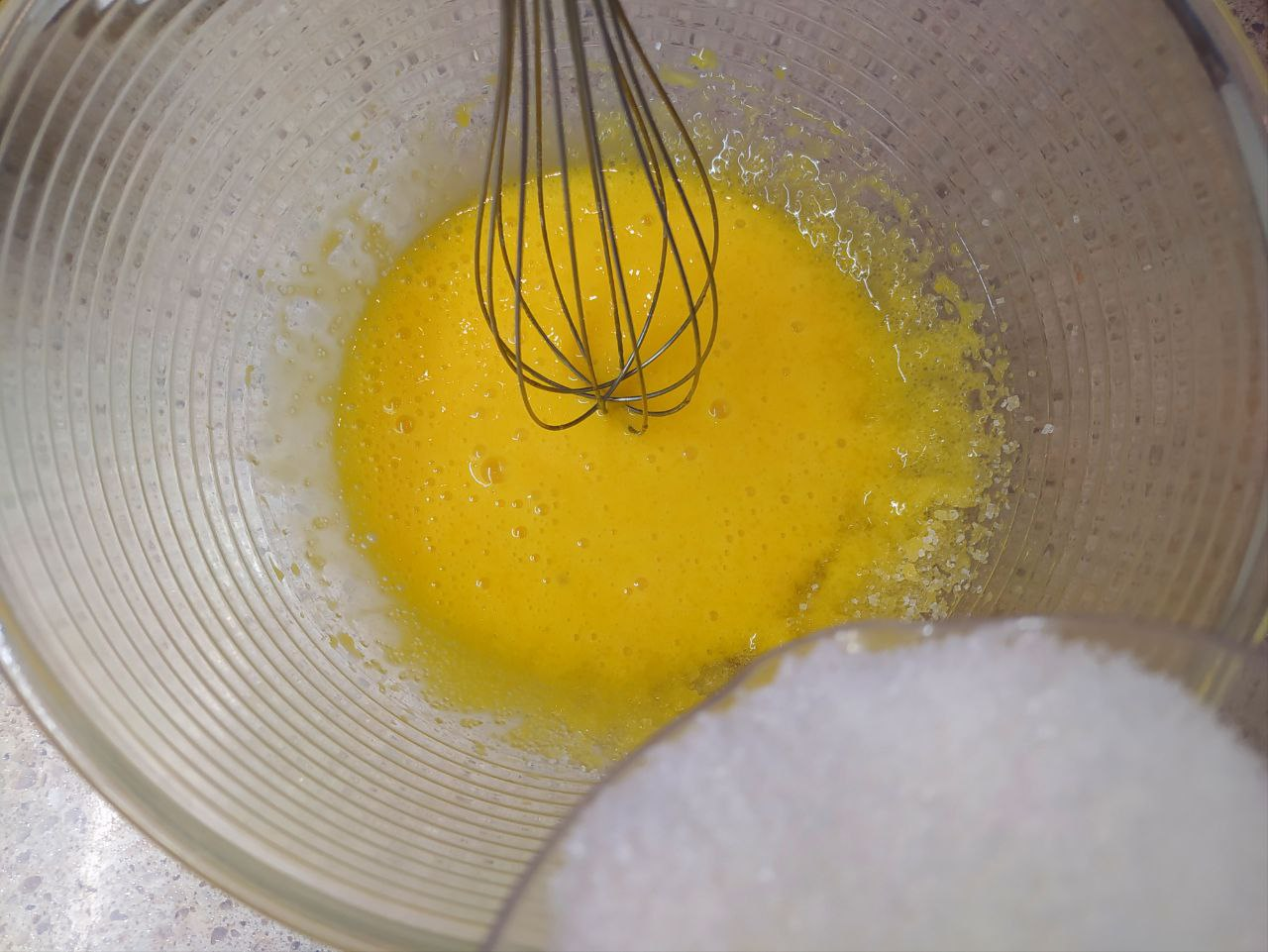 Глубокую ёмкость с белками убираем в холодильник.
