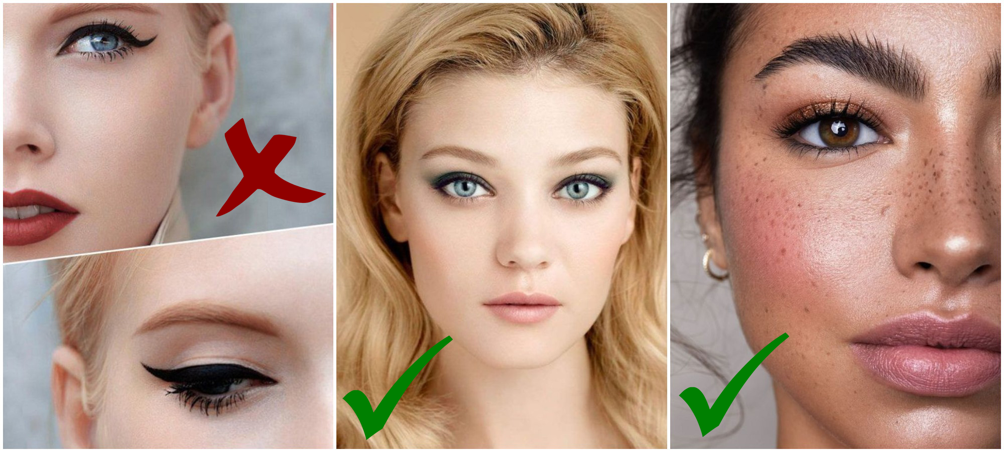 Абсолютно не в тренде наслаивать друг на друга тени разного цвета. Также, стараемся не использовать светлые матовые тени. А еще можно больше не учиться рисовать четкие толстые стрелки. Более актуальными стали растушеванные варианты.