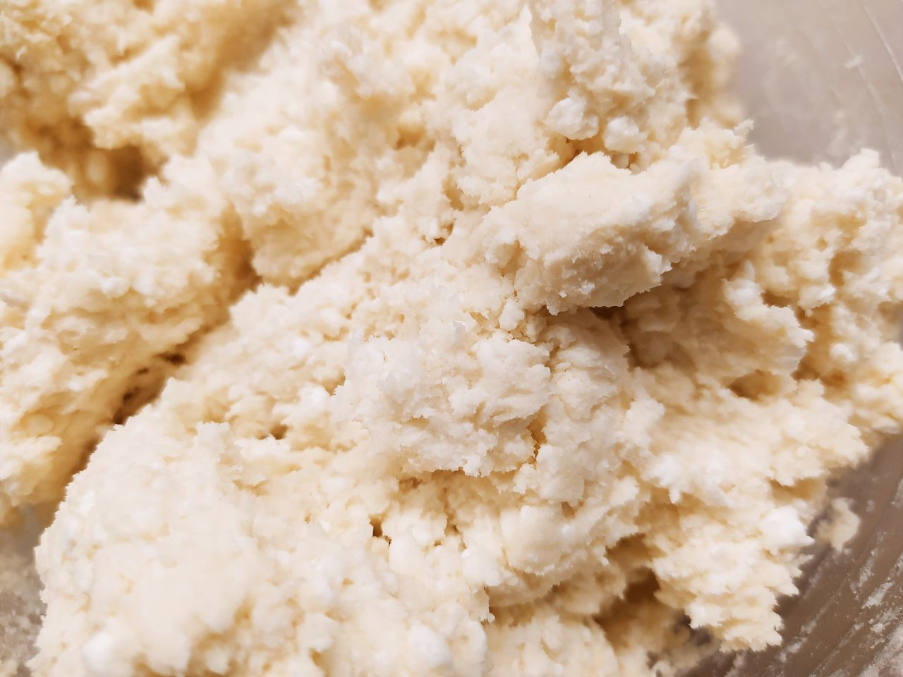 2. Добавить соль, соду, муку. Замесить тесто и поставить в холодильник на 1 час.