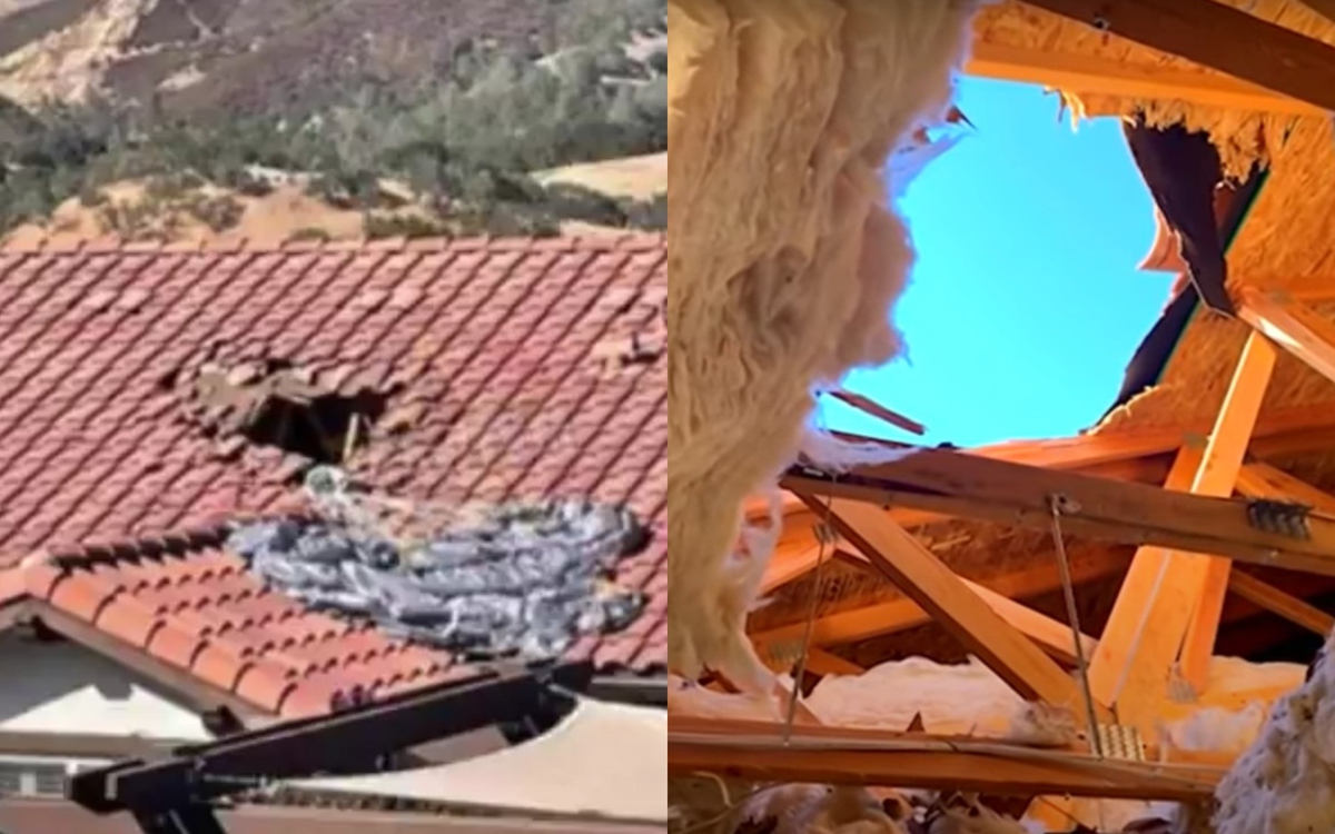 Но британцу невероятно повезло – он рухнул на крышу жилого дома, пробил ее и оказался на кухне. Хозяев не было дома, поэтому мужчина никого не задел.
