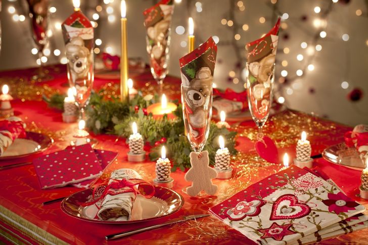 На праздничном столе обязательно должны быть свечи. Главное, разместить их безопасно и так, чтобы они сочетались с цветовой гаммой всех украшений.