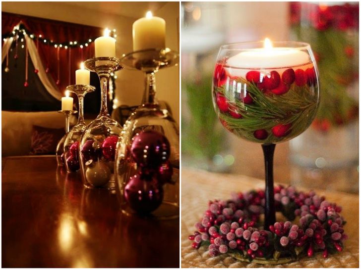 Бокалы можно использовать не только по назначению, а например, для создания вот таких элементов декора.