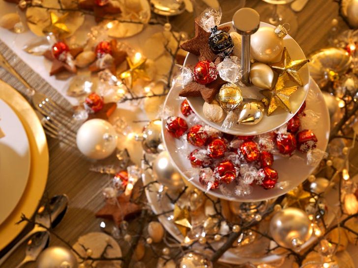 Конфеты стоит подбирать по обёртке, чтобы они сочетались по цвету с другими украшениями. И стильно, и вкусно.